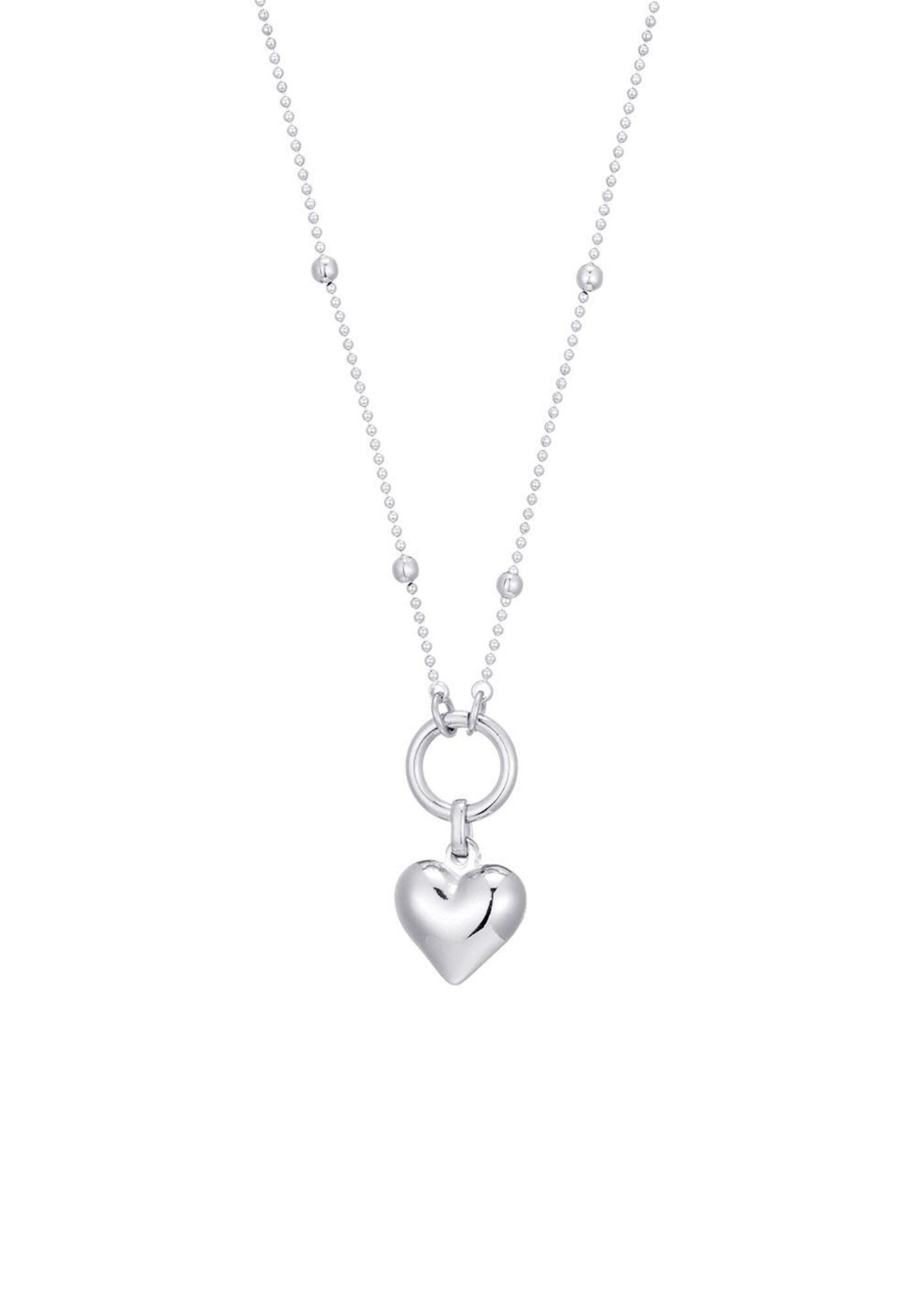 Bolletjes ketting met hart bedeltje zilver