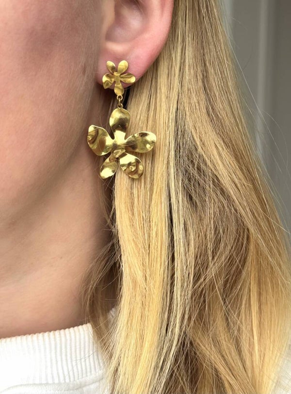 Double flower oorbellen goud