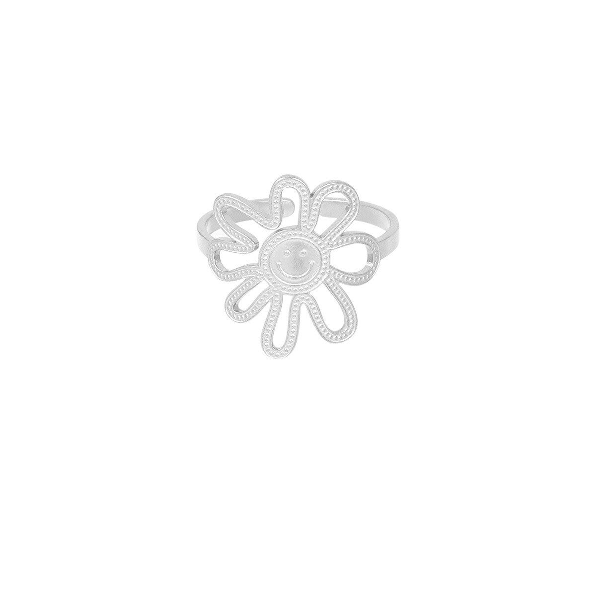 Smiley flower ring zilver