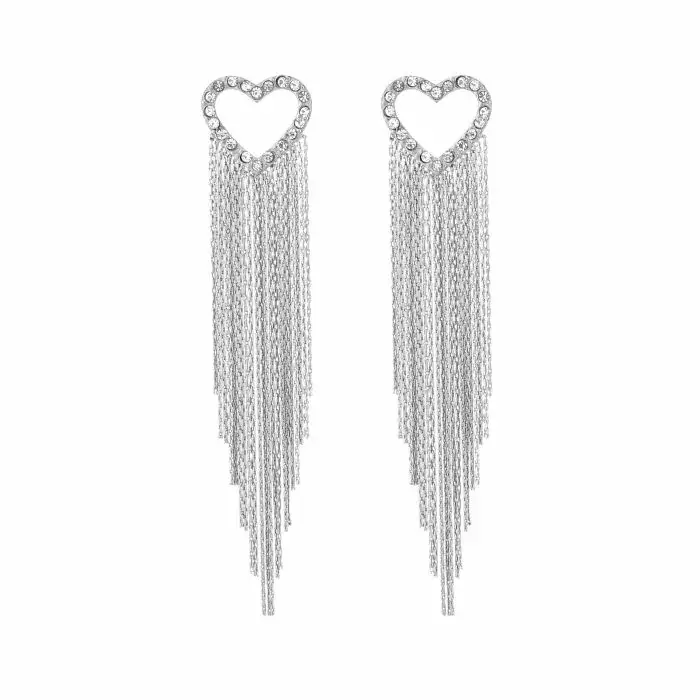 Glitter hart oorbellen met sliertjes zilver